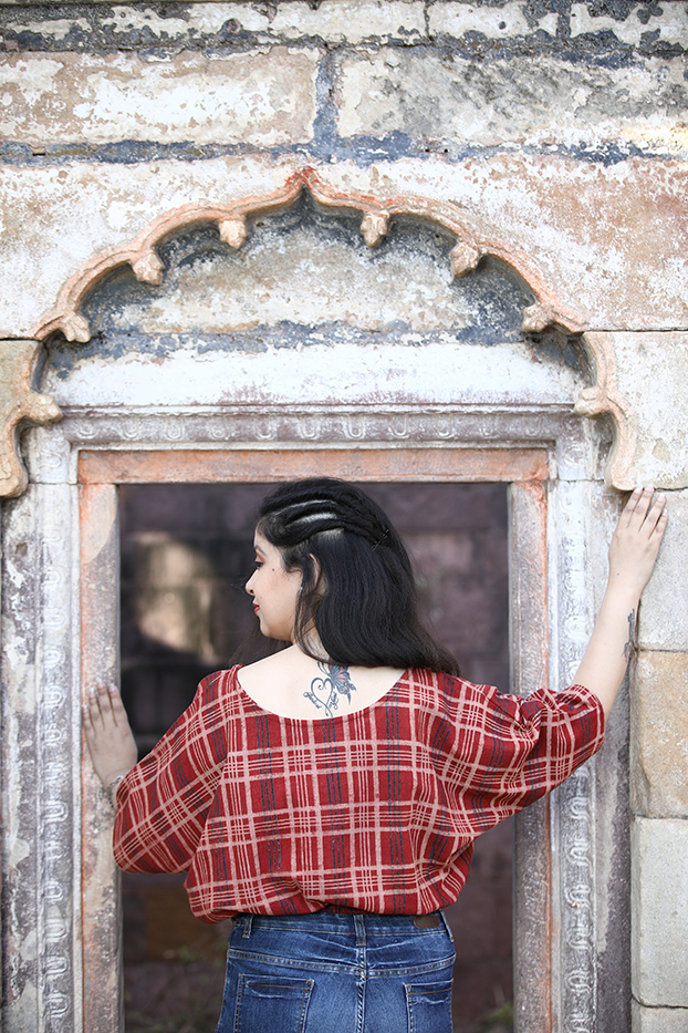 Our signature styles,hand crafted relaxed fit indigo  top is made in soft breathable hand woven cotton with bold checks in natural dyes. It features elasticated waist and endures beyond seasons and designed for everyday life. Pair it with denims or one of our wrap pants.